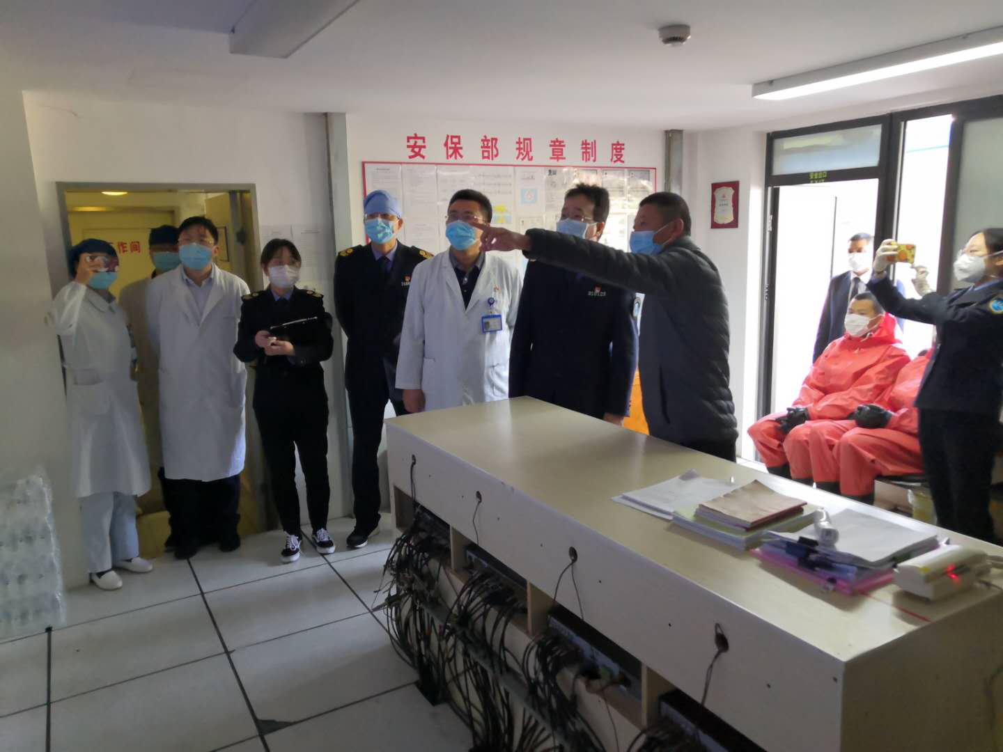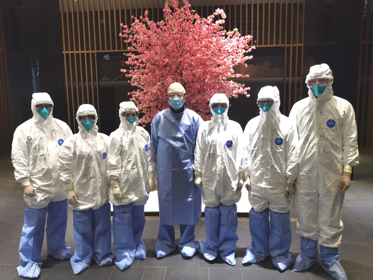 时间紧迫,任务紧急,会议中心立即成立一支以党员和客房领班为骨干的防疫队伍,经过专业人员培训,在总经理带领下,党员张建根、苏超峰、顾静和骨干杨巧珍、徐青娥、郭娟娟穿上专业的二级防护服勇敢地进入隔离污染区进行消毒清扫。